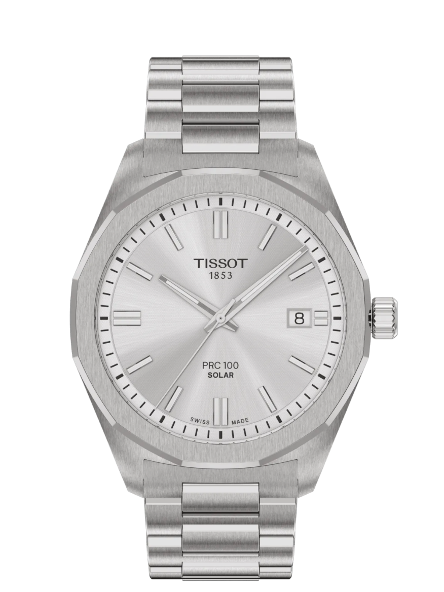 First introduced in the mid-2000s, the PRC 100 was recognised for its striking design, carving out its place in Tissot’s collection. Today, it returns with a pioneering Lightmaster Solar Quartz movement, harnessing photovoltaic energy to fuel every second. With its 39mm stainless steel case and bold dodecagonal bezel, this model exudes confidence. Beneath its sleek sapphire crystal lies a solar-powered quartz movement, designed to recharge effortlessly from both natural and artificial light. The End of Energy indicator ensures optimal performance, while the compatibility with our 20 mm straps allows wearers to personalise their style, whether through classic leather or modern Milanese options. Discover this 39mm solar-powered watch with its stainless-steel case and matching bracelet.